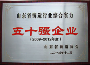 卓爾公司榮獲“山東省鑄造行業(yè)綜合實(shí)力2009-2012五十強(qiáng)企業(yè)”稱號(hào)
